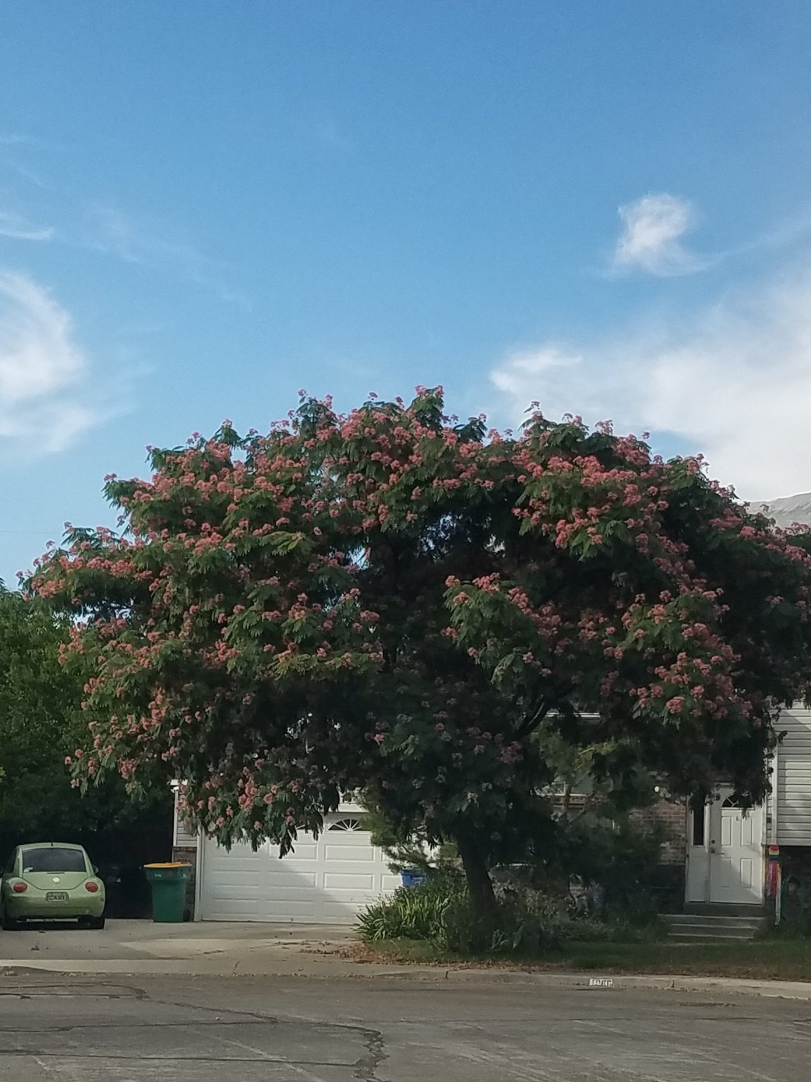 Every single one of those flowers will put out a seed pod with 5-10 seeds in it. Those pods scatter themselves everywhere across my yard. Which is why the garden bed project I was working on is now completely covered with mimosa seedlings. All of which want to be thirty foot tall trees.