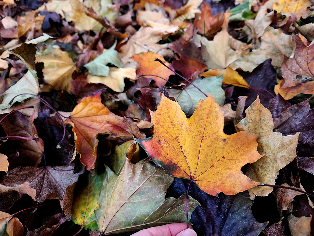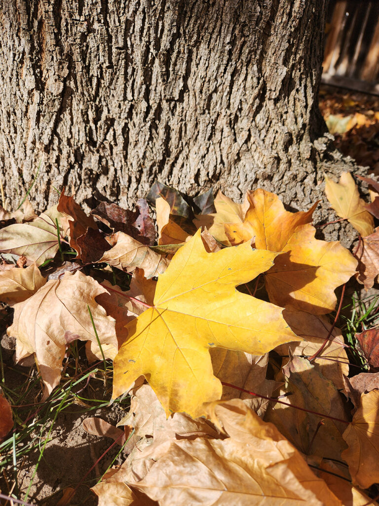 This years leaves have gorgeous colors. They don’t always. Some years the frost hits early and the leaves are brown before they hit the ground. This year shades of yellow, gold, orange, and red toss among the brown. I keep seeing leaves that are so beautiful I consider collecting them and attempting to preserve their color. Instead I take a few pictures and let them continue their cycle of usefulness rather than encasing them with chemistry. The beauty of leaves does not end when they fall from the tree. This pile will enrich the spot in my yard that I hope to turn into a garden. I carry the plan of that garden in my head. I have for years. Perhaps next year it will actually happen.