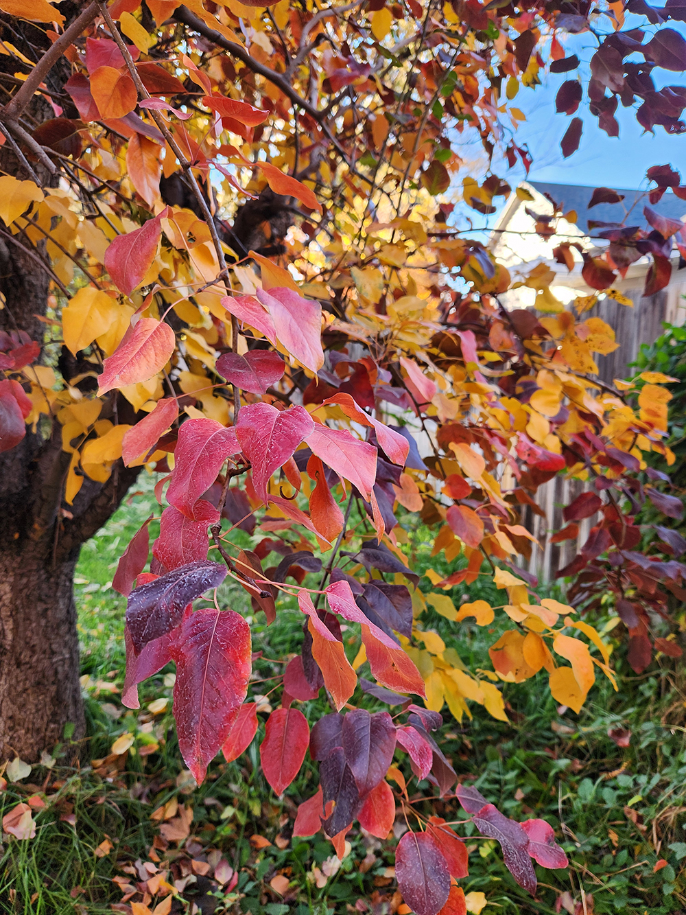 This years leaves have gorgeous colors. They don’t always. Some years the frost hits early and the leaves are brown before they hit the ground. This year shades of yellow, gold, orange, and red toss among the brown. I keep seeing leaves that are so beautiful I consider collecting them and attempting to preserve their color. Instead I take a few pictures and let them continue their cycle of usefulness rather than encasing them with chemistry. The beauty of leaves does not end when they fall from the tree. This pile will enrich the spot in my yard that I hope to turn into a garden. I carry the plan of that garden in my head. I have for years. Perhaps next year it will actually happen.